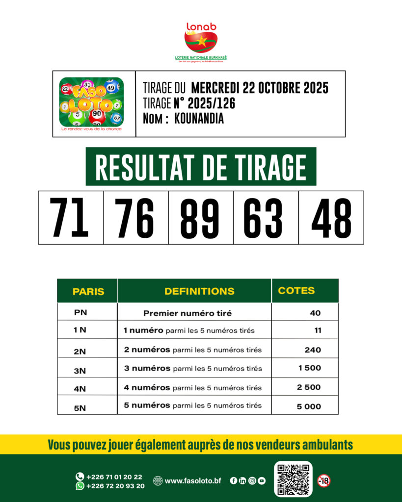 Faso Loto : Résultats du tirage du 22 octobre