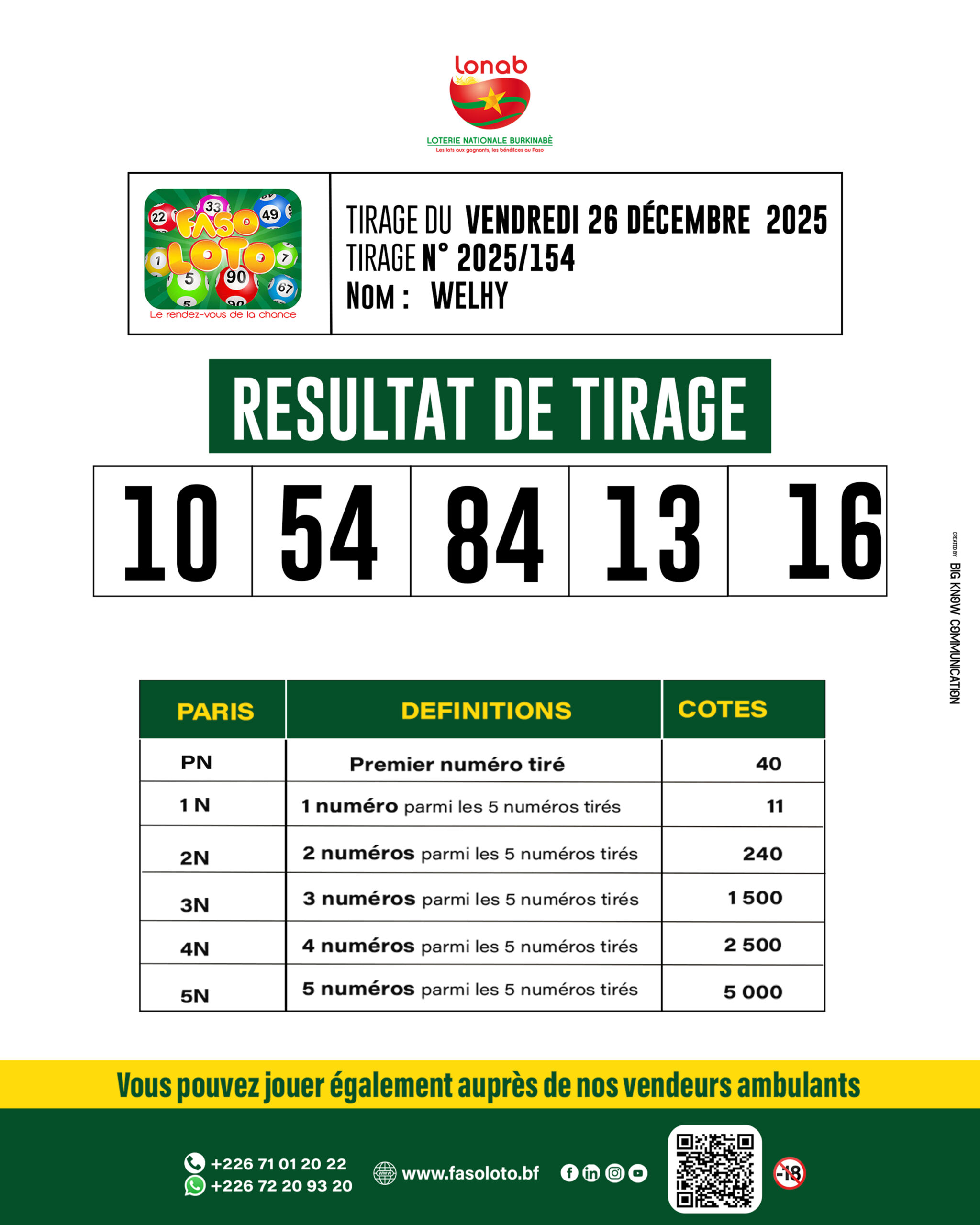 Faso Loto : Résultats du tirage du 26 décembre