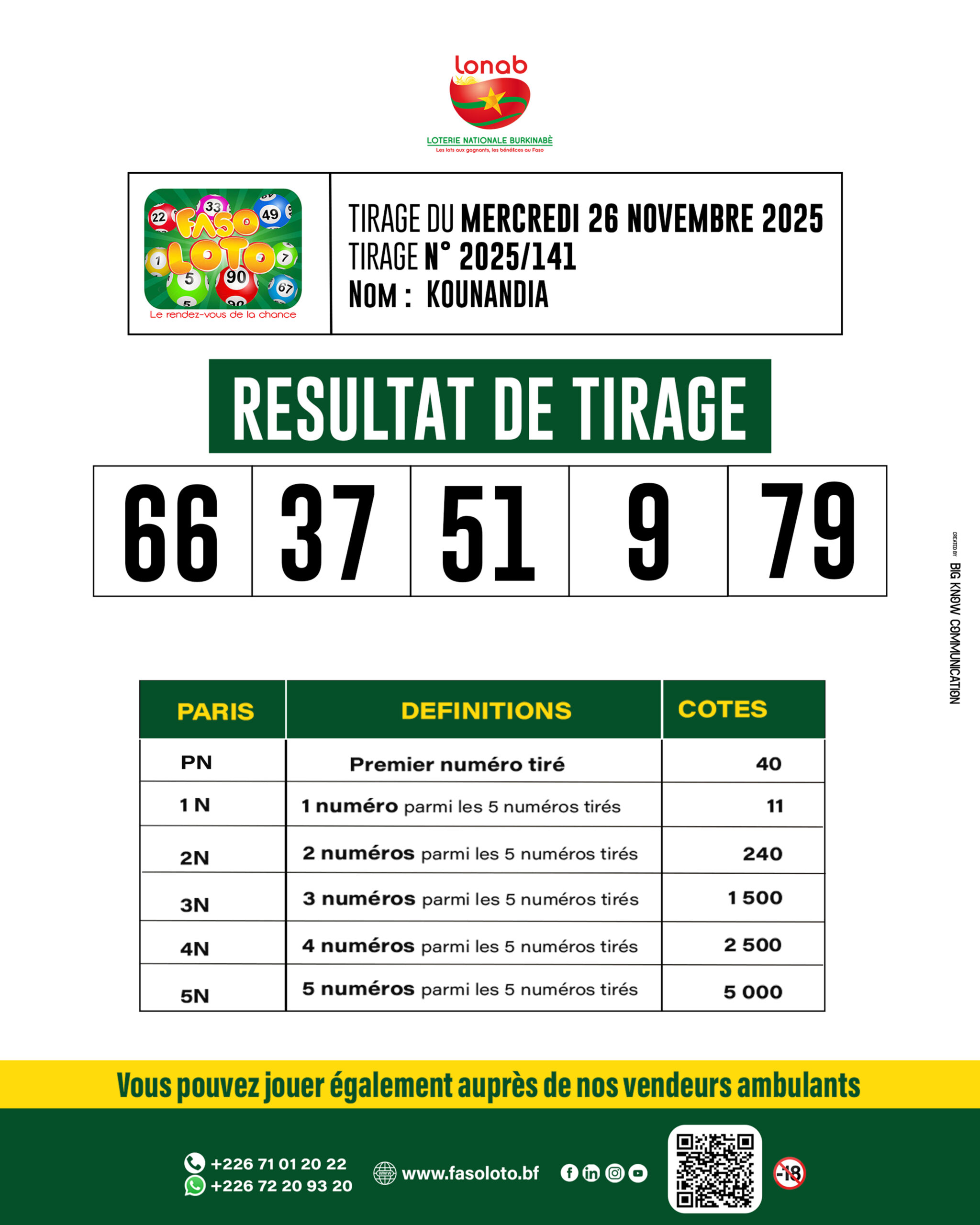 Faso Loto : Résultats du tirage du 26 novembre