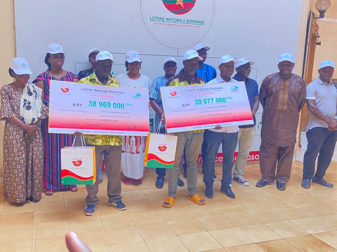 Le jeudi 16 octobre 2025, la loterie nationale burkinabè (LONAB) a procédé à son siège à la remise de deux chèques à deux heureux gagnants du 4+ 1 du 1er octobre, Hamadou Zoungrana et Danem Gambi. Le cumul de leurs gains s’élève à 78.046.000 F CFA. La cérémonie a été présidée par Yamba Jean Zida.
