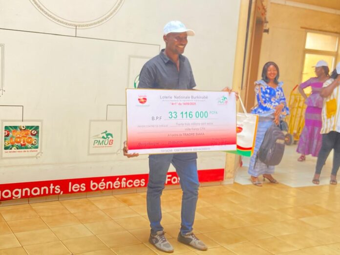 Dans la matinée du 23 septembre 2025 à Ouagadougou, Yamba Jean Zida, représentant du directeur général de la LONAB a présidé à la remise d’un chèque de 33.116.000 F CFA à Siaka Traoré, technicien en bâtiment résidant à Garghin. Avec une mise de seulement 300 F CFA au jeu 4+1 du PMUB, il est désormais multimillionnaire.